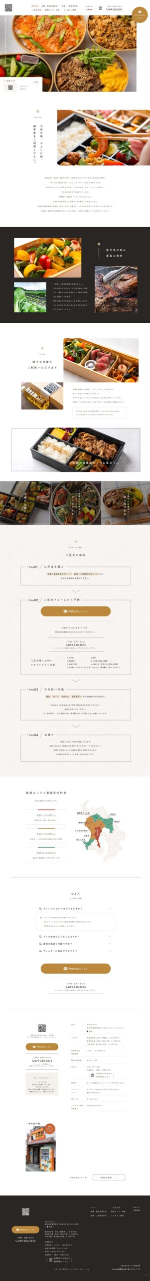 - 鹿児島産を中心に新鮮なお野菜を使用していることをはじめ、お弁当へのこだわりを発信し、ブランドとしての魅力を高めることを目的として制作しています。またHPからの予約獲得のため、お届け可能エリアや金額などをわかりやすくまとめ、導線を整えています。