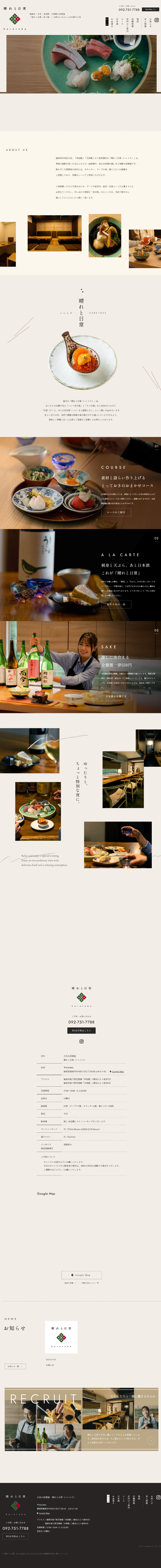 - 心安らぐ空間で、旬の海鮮や天ぷら、日本酒が愉しめる居酒屋です。 ホームページから新規のお客様のご来店に繋げたり、求人へアプローチできるようSEOを考慮した構成となっております。