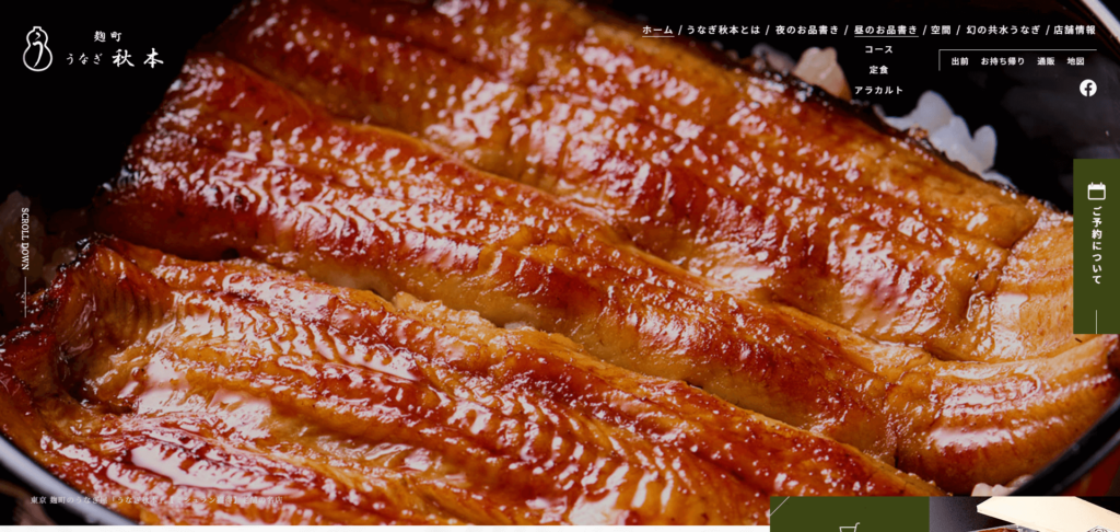 ホームのキービジュアルでは、ふっくらとしたうなぎのイメージをゆっくりとした動きで見せることで、高級感と期待感を演出。