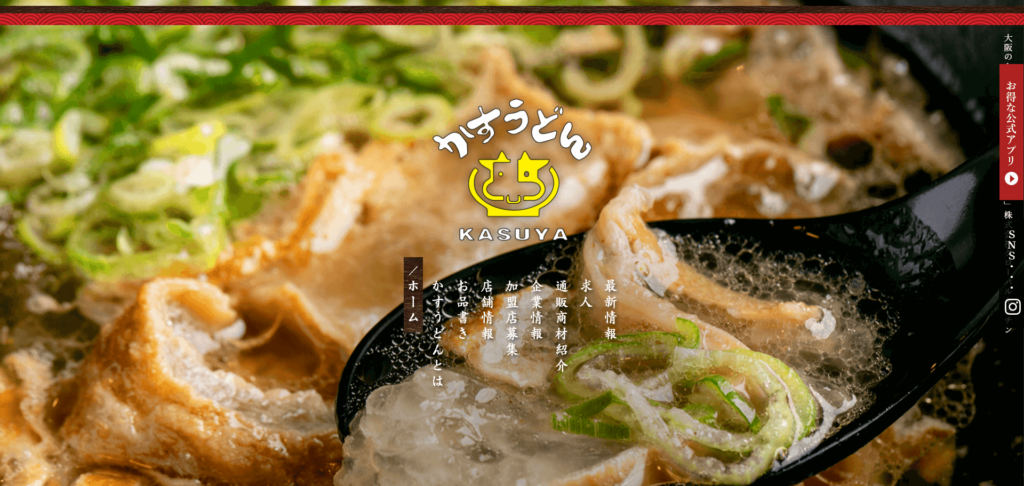 看板商品である「かすうどん」をメインに据え、その店ならではの美味しさと専門性を強くアピールしています。