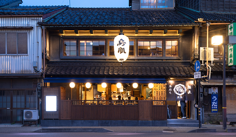 課題は、既存店(馬込本店 https://www.magome-torihada.com/)や今後展開予定の店舗でも共通して使える汎用性を持ちつつ、金沢の歴史的景観に負けない「顔」を作ることでした。