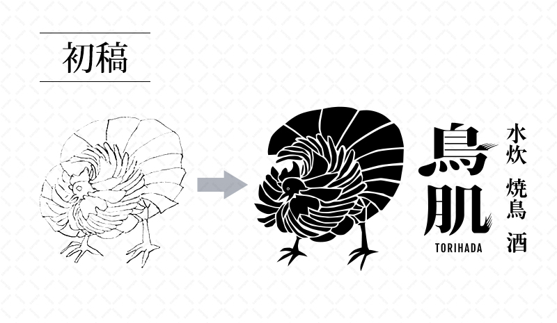 ここで意識したのは「鶏の羽を、着物の袂(たもと)に見立てて広げるような力強さ」。