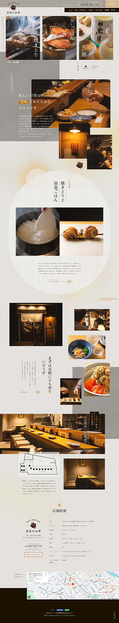 - 備長炭で焼く焼鳥と羽釜炊きご飯というお店の魅力を丁寧に発信。地域性と検索性を意識した構成で、利用シーンを思い描きやすくし、親しみやすく足を運びたくなる導線設計を行いました。