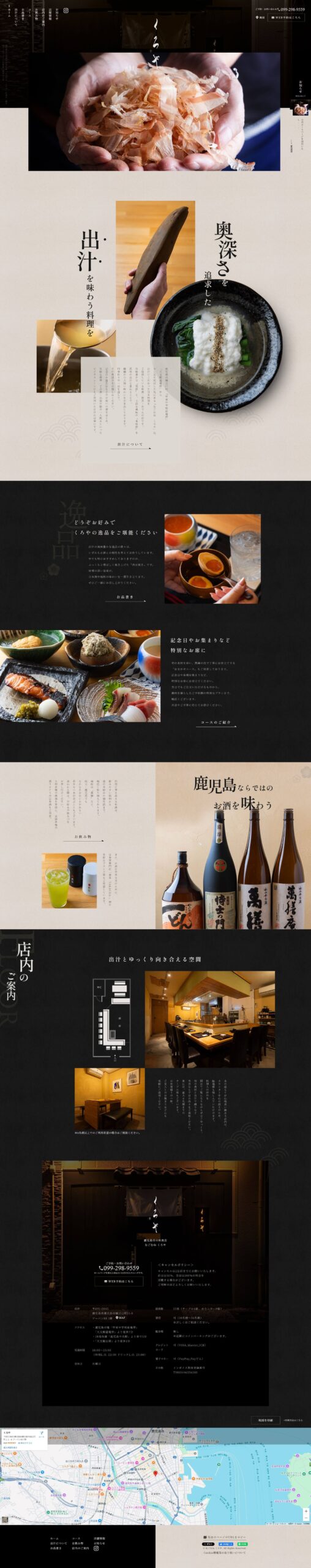 - 出汁にこだわった日本料理を楽しめる、鹿児島県の和食店です。 人気のおでんのみならず、こだわりの出汁を用いた料理を出していることを伝え、おでん以外の魅力を打ち出しています。接待、会食などの利用シーンを紹介し、新規のお客様のご来店に繋げるよう制作しています。