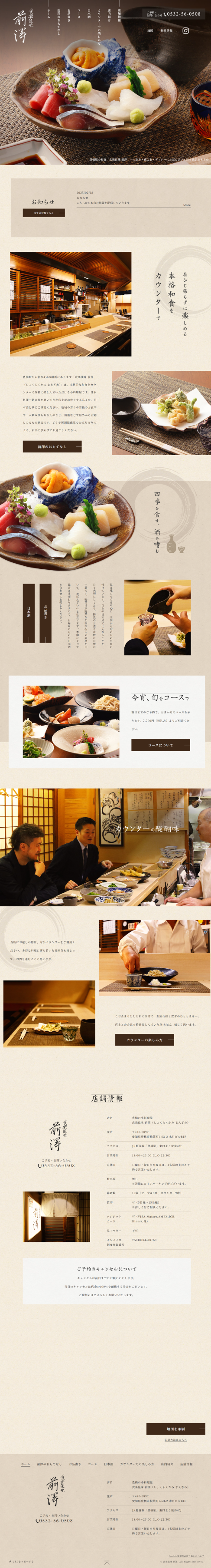 - 東京・銀座の割烹などで長年修業を積んだ店主がお作りする本格的な和食をカウンター席中心のあたたかみのある店内で愉しめる小料理店です。 上質なお料理を肩肘張らずに気軽に堪能でき、ふらっと立ち寄りたくなるような大人の憩いの場というお店の魅力や雰囲気を発信することで、新規のお客様のご来店に繋げていくことがホームページ制作の目的の一つです。