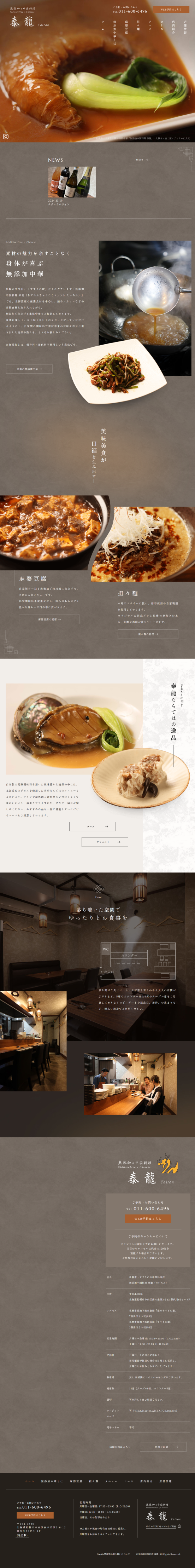 - 北海道の豊かな自然の中で育まれた食材をふんだんに取り入れた、身体に優しい無添加の本格中華をご提供しているお店です。 麻婆豆腐や担々麺をはじめ、すべて自家製の調味料を使った多彩な逸品を余すことなくお伝えできるよう構成しております。
