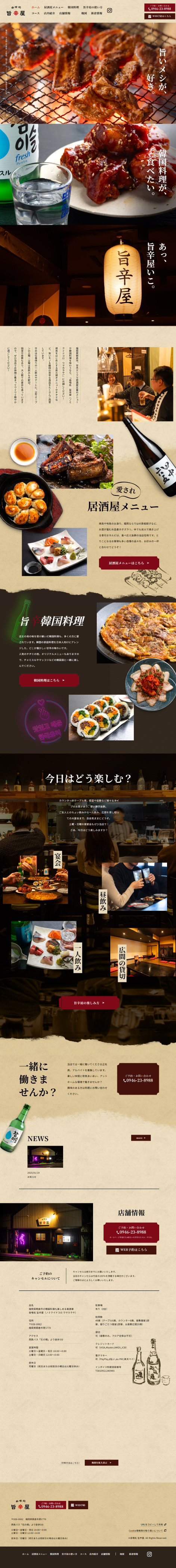 - 焼鳥や旬魚のお造り、名物の炭火で焼き上げる骨付きカルビや福岡ならではの鉄板餃子など、お酒が進む旨いモノと韓国の旨辛な逸品を愉しめる居酒屋です。 来店目的となるようなお店のこだわりや魅力を発信し、新規のお客様のご来店に繋がるよう、SEOを考慮した企画・構成となっております。