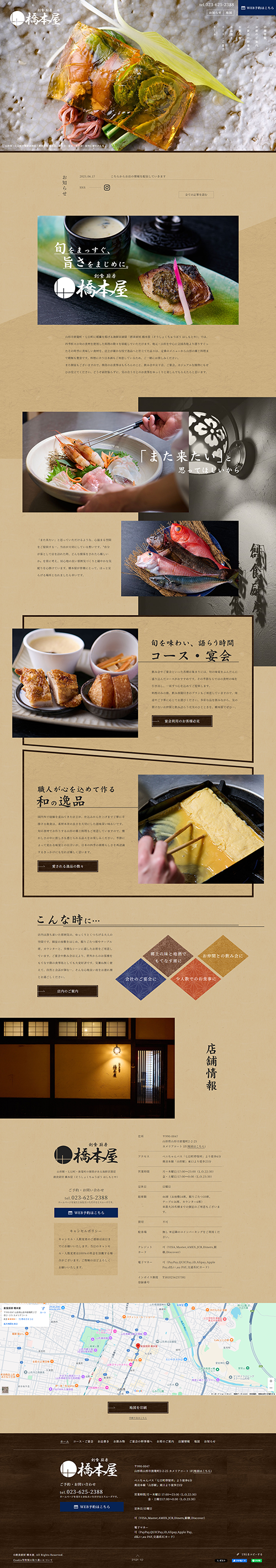 - 鮮魚と山形の郷土料理を楽しめる居酒屋です。 名物の海鮮や料理人による逸品を魅力的に発信し、他媒体で既にあった高い認知度を来店意欲へとつなげる構成に。個室の利用や地酒と楽しむ過ごし方も丁寧に紹介し、宴会・接待・観光など多様なシーンで選ばれる和食居酒屋としての魅力を伝えています。